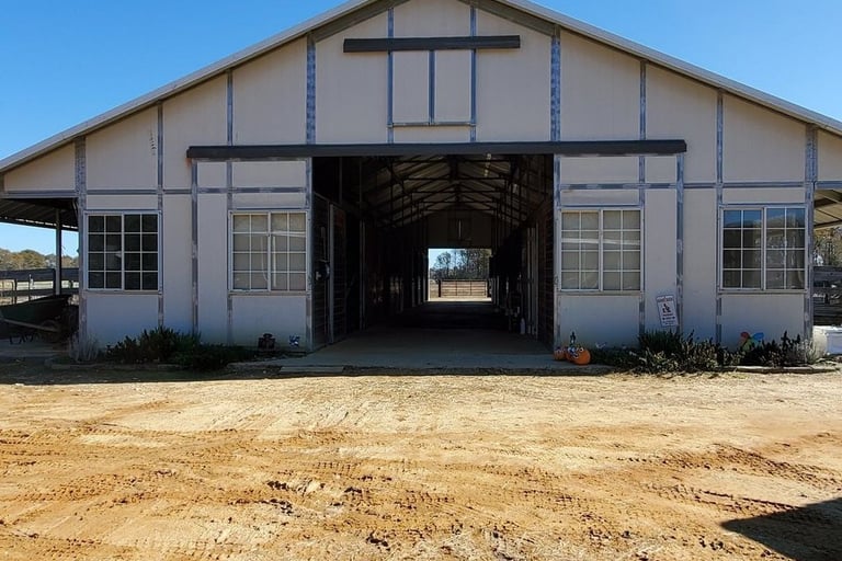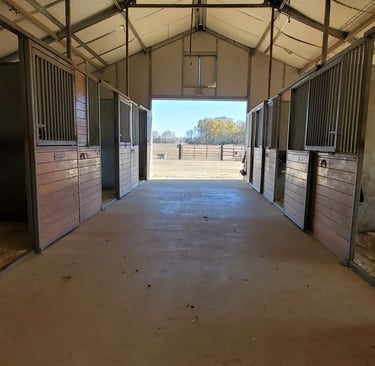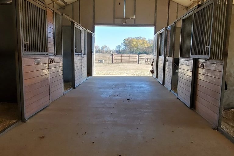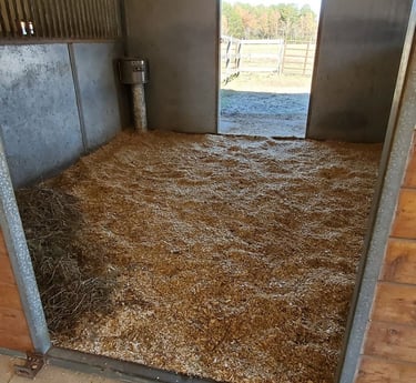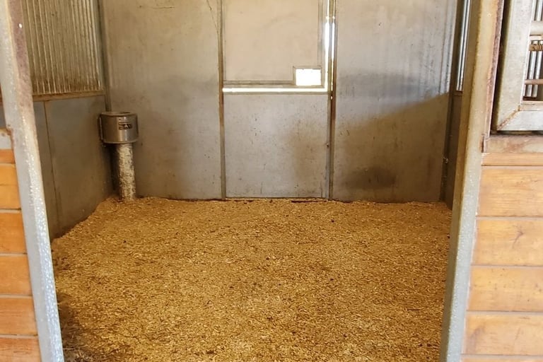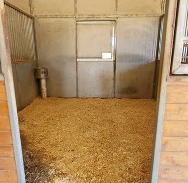 10 - 12x12 box matted and bedded box stalls, each with automatic waterers and optional 12x36 runouts